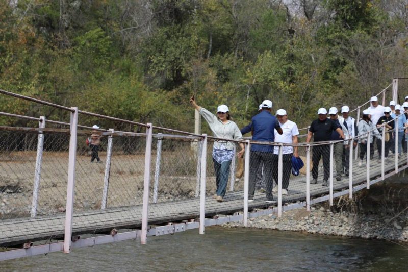 Жөө жүрүшкө облус башчысы Эрмат Джумаев баштаган жетекчилер, кызматкерлер, Жогорку Кеңештин депутаты Марат Мураталиев, экология жана туризм тармагындагы активисттер, туристтик компаниялардын өкүлдөрү жана токой чарбанын кызматкерлери катышты.